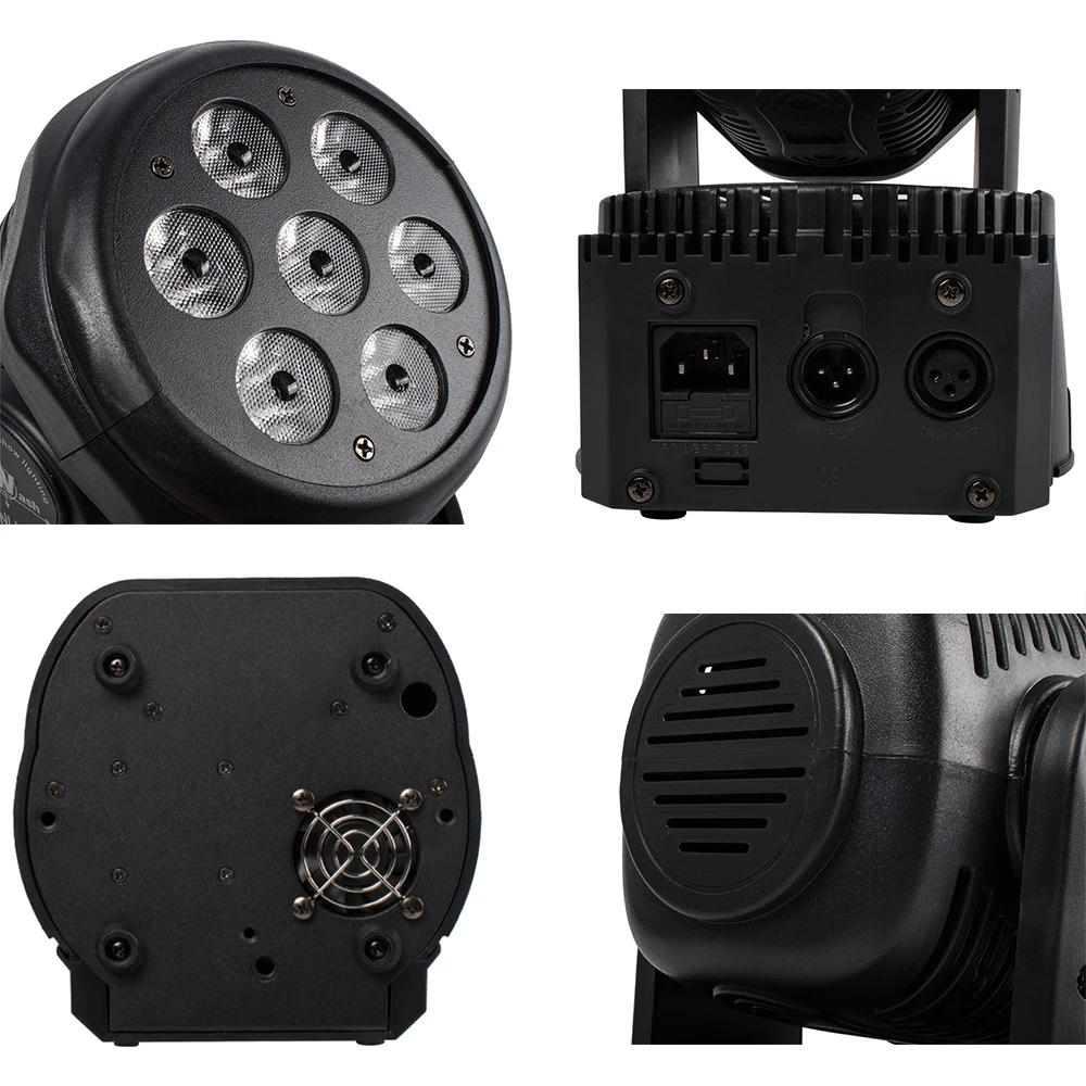 Éclairage de lumière à tête mobile 7x18W RGBW + UV/7x12W RGBW lavage LED 6 en 1 BGBWA + UV pour Disco DJ KTV 12/16DMX canaux 12/16DMX.